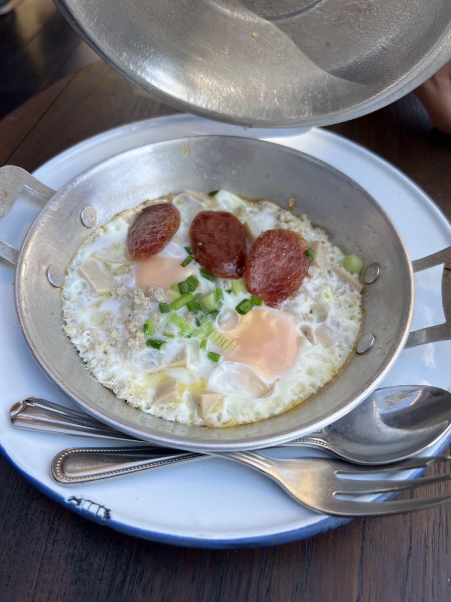 To start off, the Samantao is a wonderful find. If you are looking to try local breakfast in Bangkok, this is the place to be. The Kai Krata was the highlight for me. The dish combines 3 different variations of pork, Chinese pork sausage, ham cubes and minced pork, on top of 2 eggs. The entire combination of the dish works very well. The Tom Yam noodles is a preview towards what Mama Mee tom Yam is like. Springy noodles, extremely savory and not overly spicy soup brings a perfect balance to the dish. Steamed bread with custard was perfect, nice warm bread with custard and a hint of sweetness. The environment and staff are really pleasant and welcoming. The setting of the shop allows one to linger around after breakfast just to enjoy the peace and calm of the surroundings.